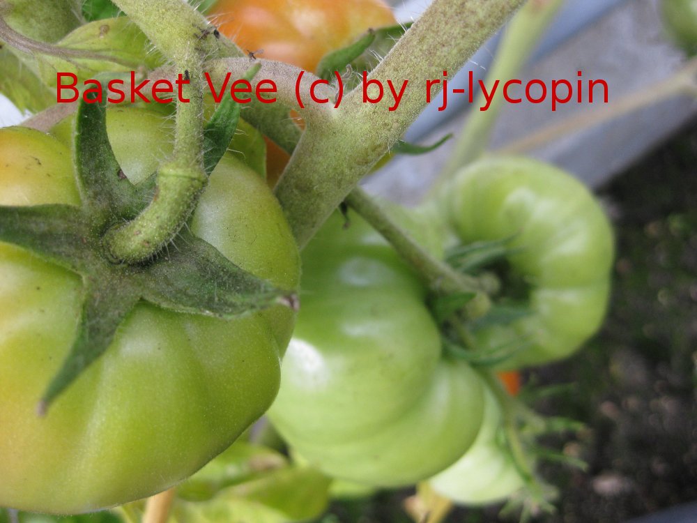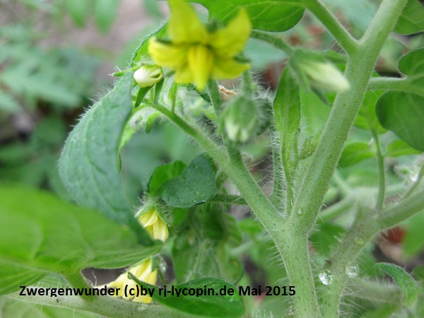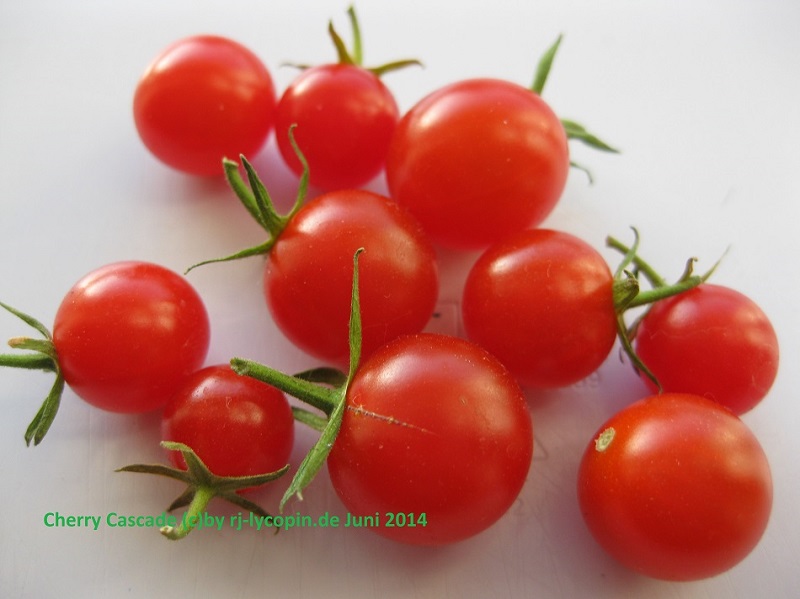 gekommen. Diese Buschtomate (Stocktomate) mit sehr niedriger Höhe, also eine determinierende Sorte,hat schöne rote Früchte, etwas flachrund geformt, mit ca 60-80 Gramm Gewicht. Diese früh reifende Sorte ist sehr saftig.